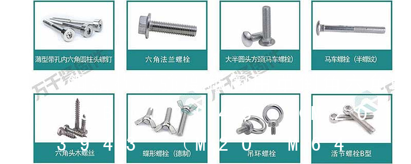 其中、國標、德標、日標用M表示(例如M8、M16),美制、英制則用分數或#表示規格(如8#、10#、1/4、3/8)。 鋼結構上有專用的高強度螺栓.頭部會做大些.尺寸也有變化.另外有特殊用處的:t形槽螺栓用,機床夾具上用的最多,形狀特殊,頭部兩側要切掉.地腳螺栓,用于機器和地面連接固定的,有很多種形狀.u形螺栓,如前述.等等.還有焊接用