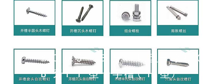 外扳擰:六角、六角法蘭面、六角凸緣、六角花形等;內扳擰:一字槽、十字槽H型(Phillips)、十字槽Z型(Pozidriv)、十字槽F型(Frearson)、四方槽(Scrulox)、復合槽、內花鍵、內六角花形(梅花槽)、內三角、內六角 ④頭型 :用字母來表示頭型的種類,可參看前文常用螺釘頭型分類。 ⑤牙型/尾型 : 用字母來表示牙型/尾型的種類,可參看前文“常用螺釘牙型/尾型分類”。 ⑥槽型 :參看前文“我司常用螺釘槽型分類”,十字槽或無槽(如沖六角頭